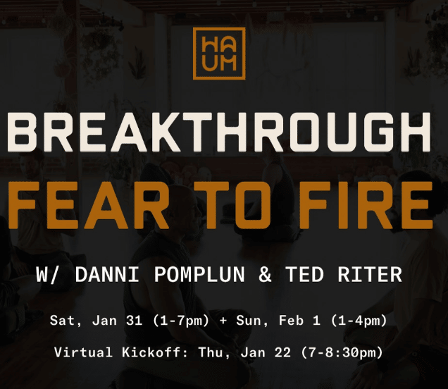 My friend and collaborator, Danni Pomplun, and I are co-leading Breakthrough: Fear to Fire, a 2-day immersive weekend for men on January 31–February 1 in San Francisco.